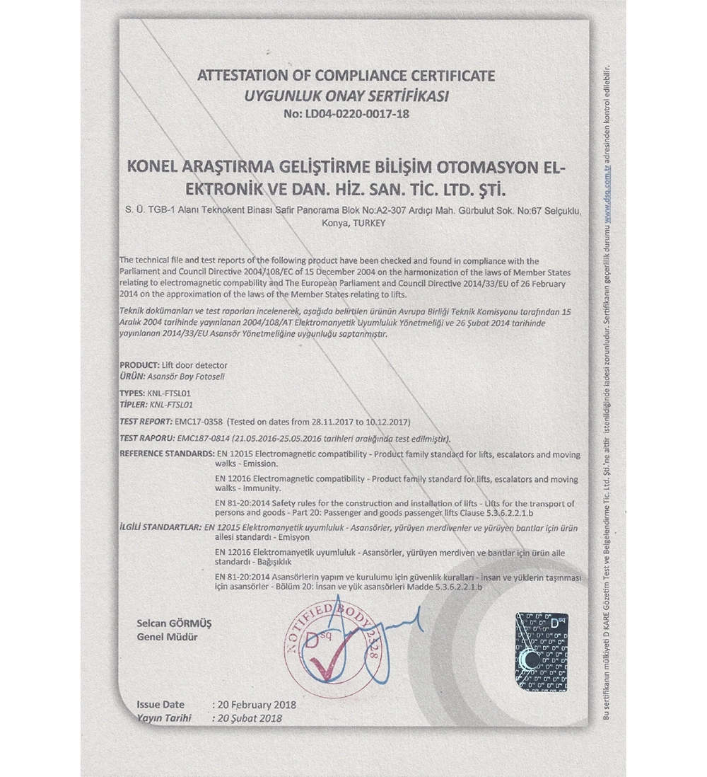 EN 81-20 حساس باب المصعد وفقًا للمعيار