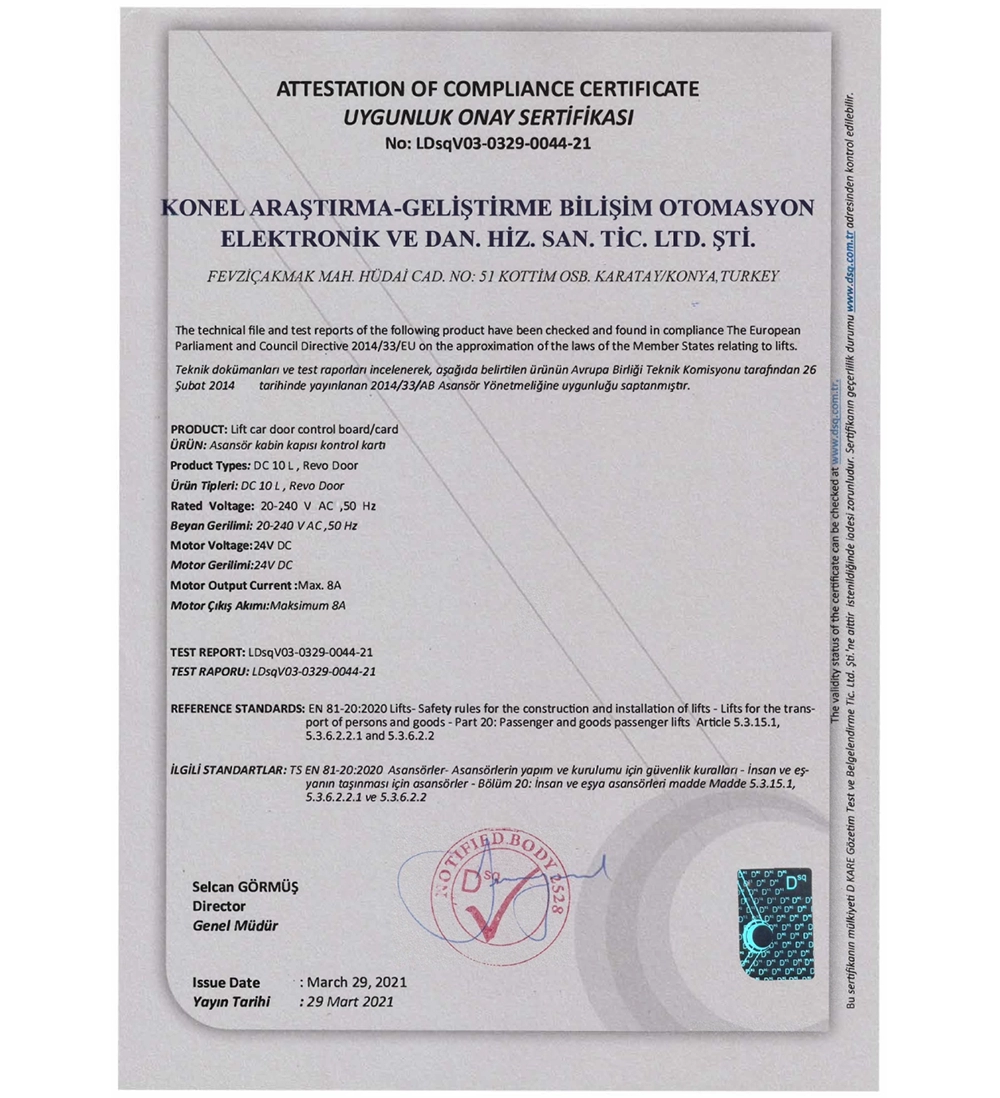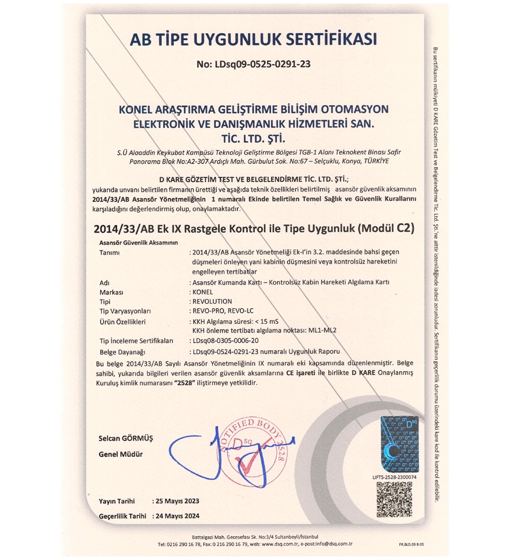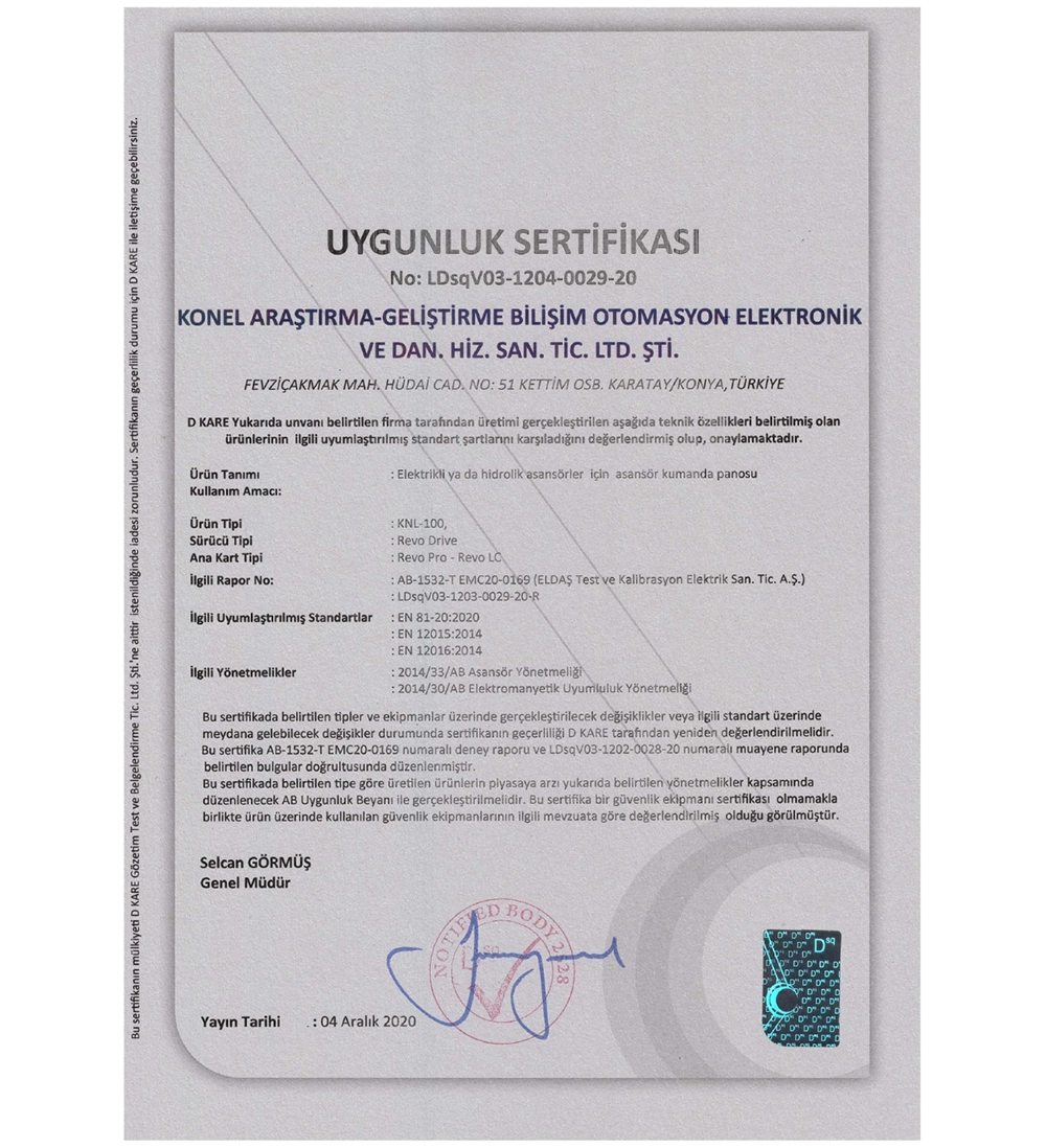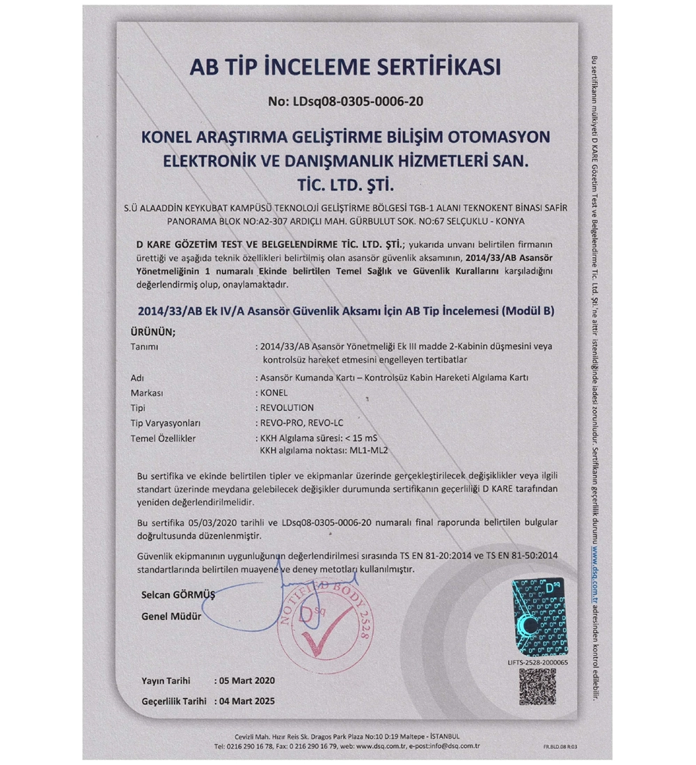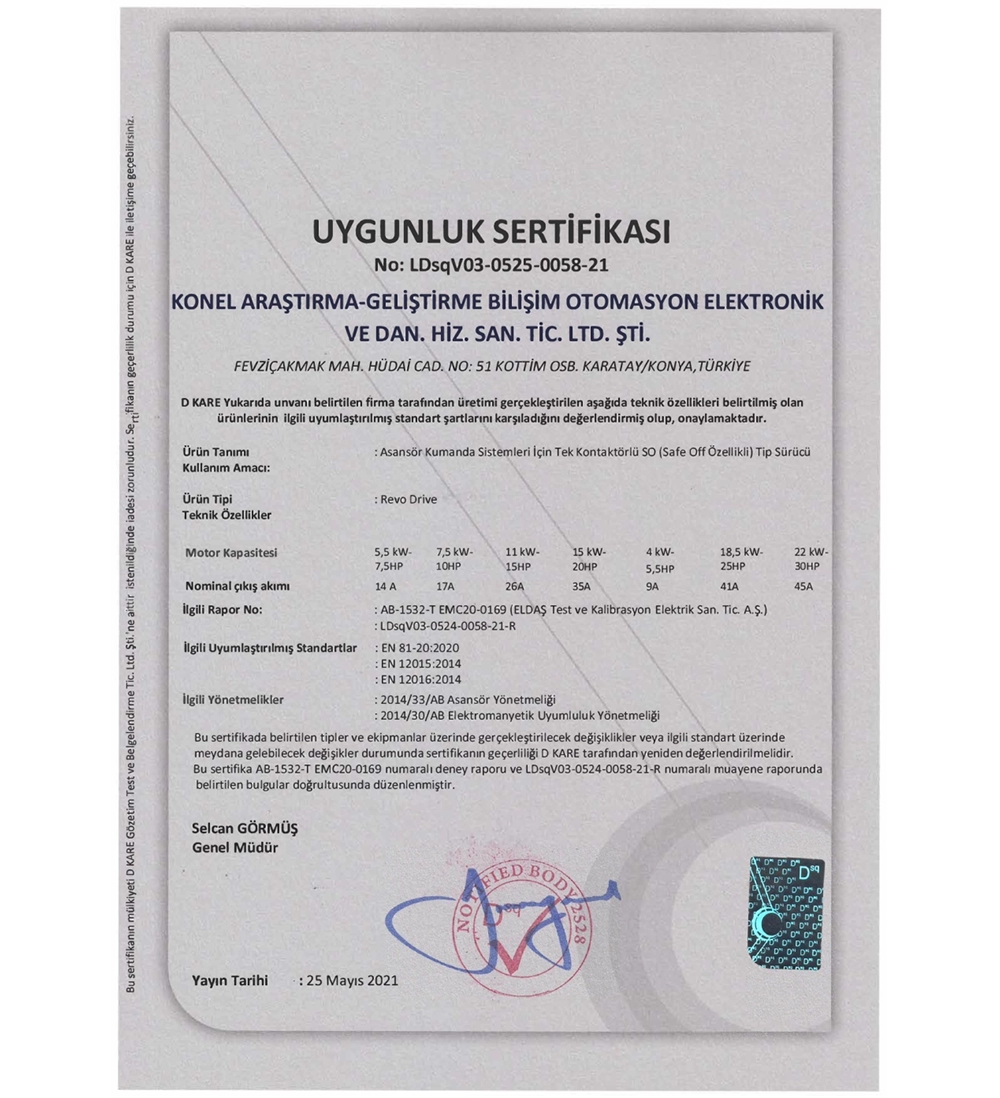 شهادة لوحة تحكم المصاعد بمحول ريفو درايف